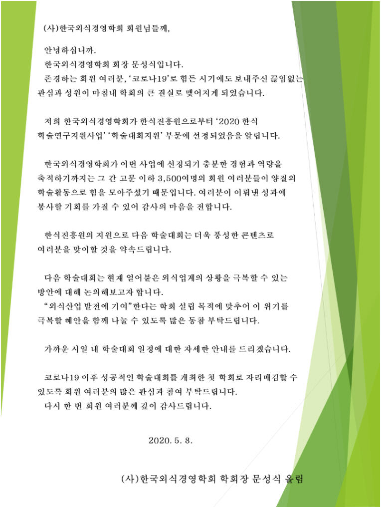 (사)한국외식경영학회 정관 개정(안) 공지