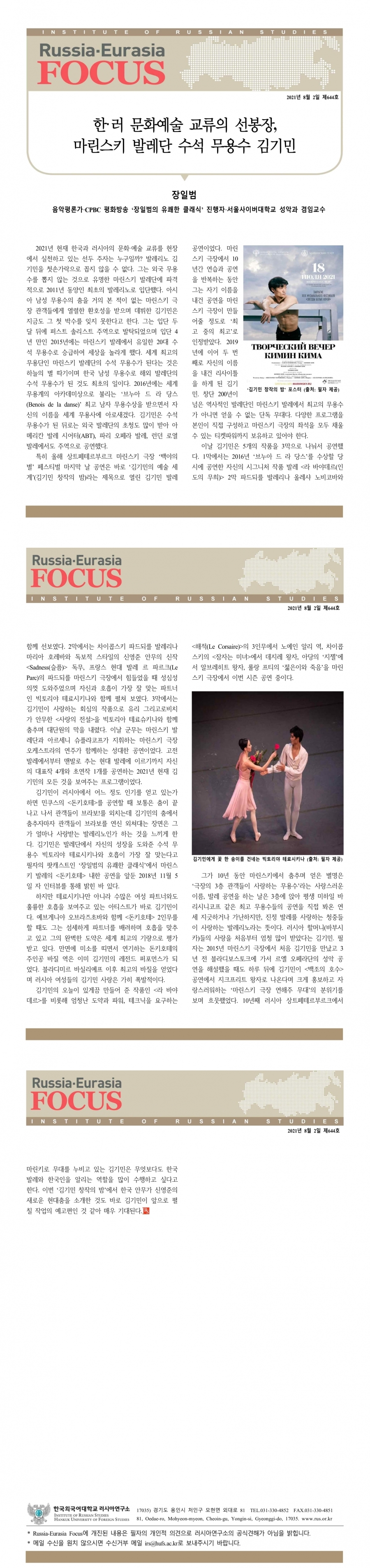 제644호 한·러 문화예술 교류의 선봉장, 마린스키 발레단 수석 무용수 김기민