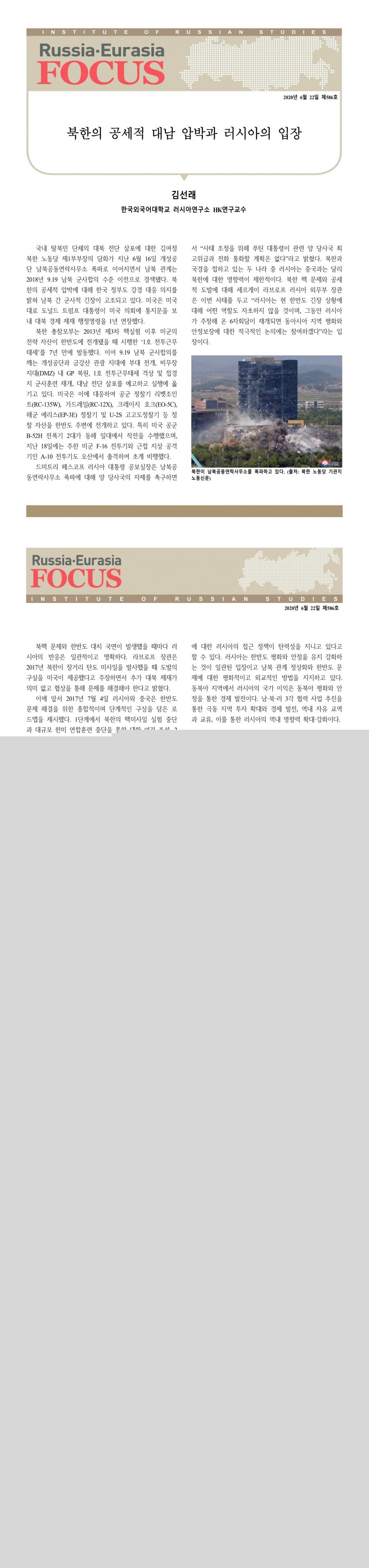 제586호 북한의 공세적 대남 압박과 러시아의 입장