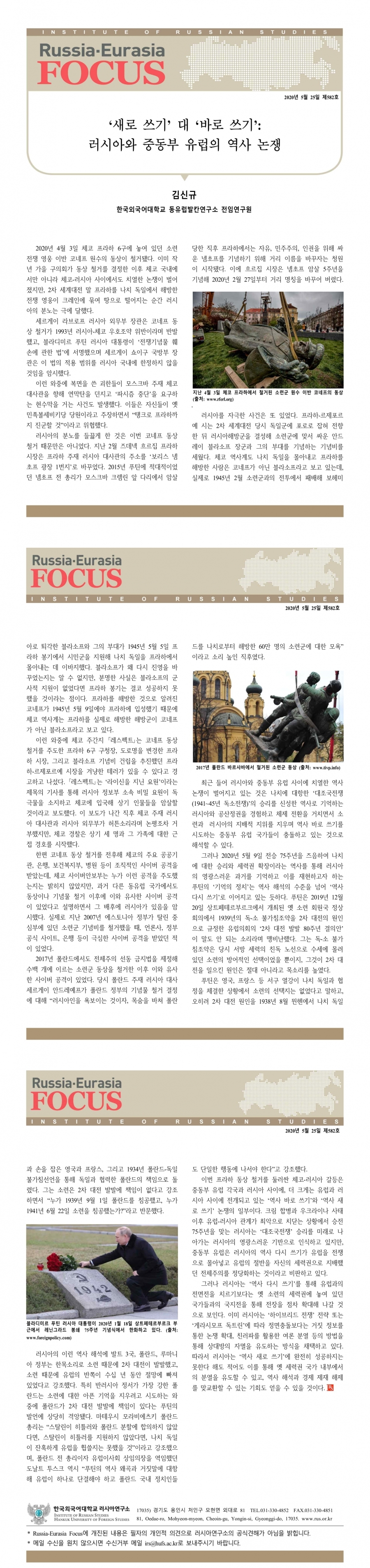 제582호 ‘새로 쓰기’ 대 ‘바로 쓰기’: 러시아와 중동부 유럽의 역사 논쟁