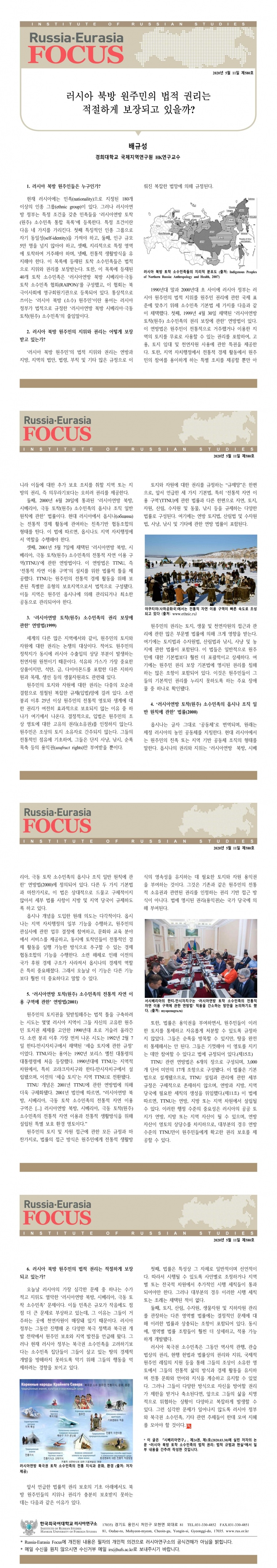 제580호 러시아 북방 원주민의 법적 권리는 적절하게 보장되고 있을까?
