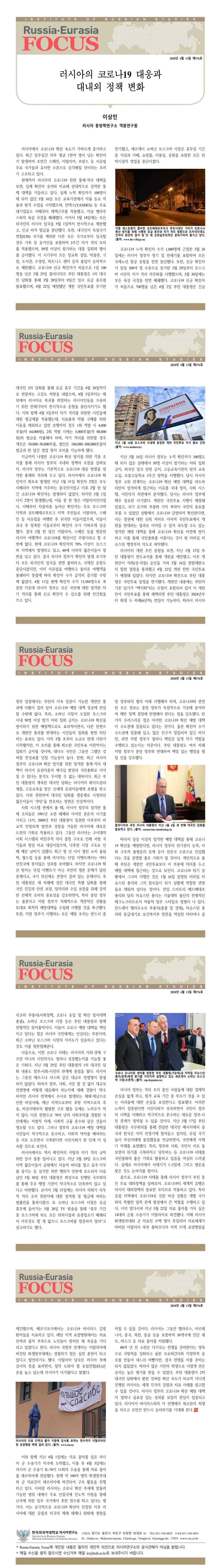 제576호 러시아의 코로나19 대응과 대내외 정책 변화