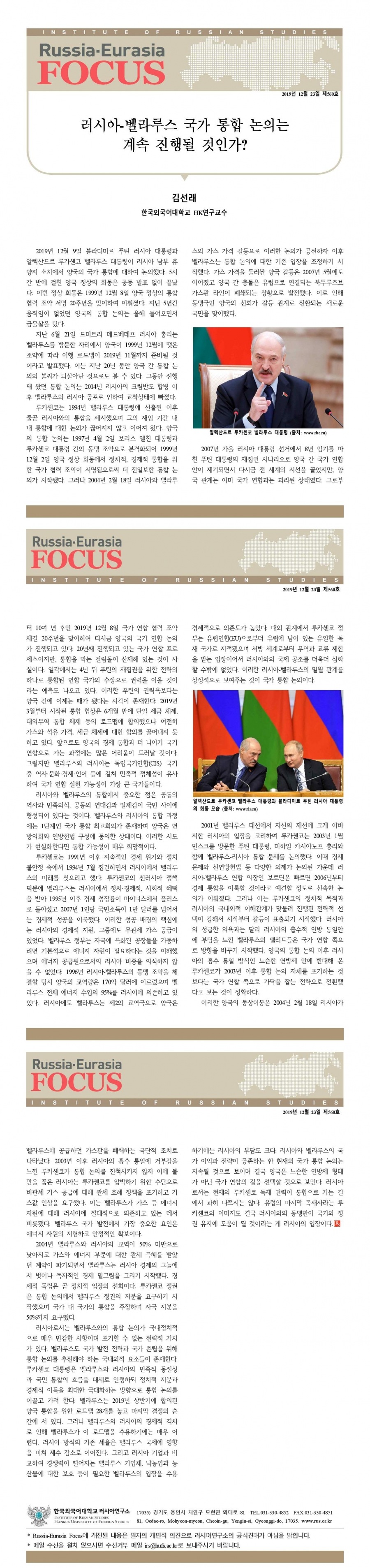 제560호 러시아-벨라루스 국가 통합 논의는 계속 진행될 것인가?