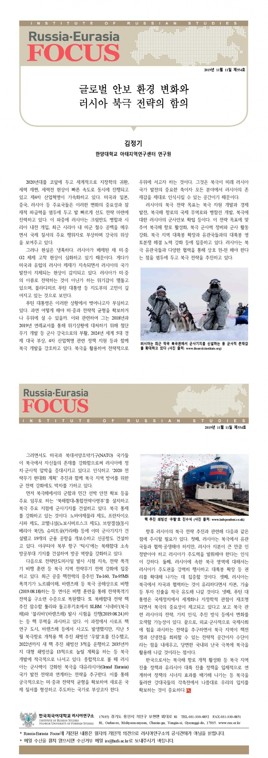 제554호 글로벌 안보 환경 변화와 러시아 북극 전략의 함의