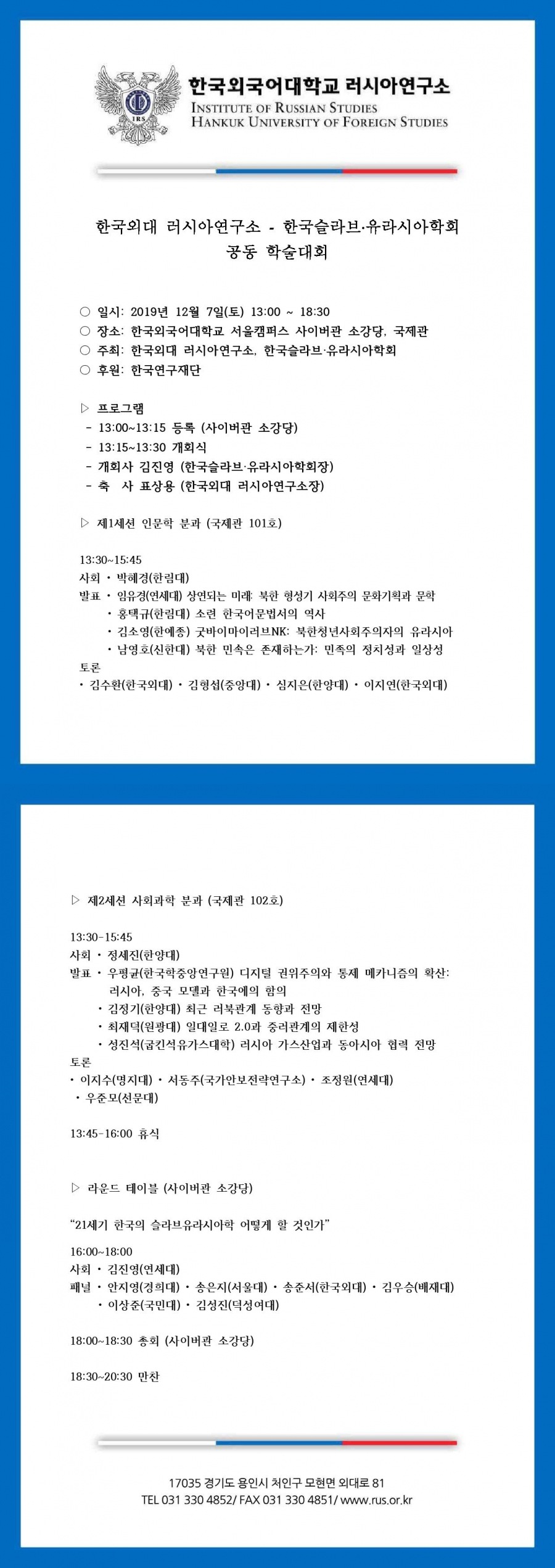 2019 한국외대 러시아연구소 & 한국슬라브유라시아학회 공동학술회의