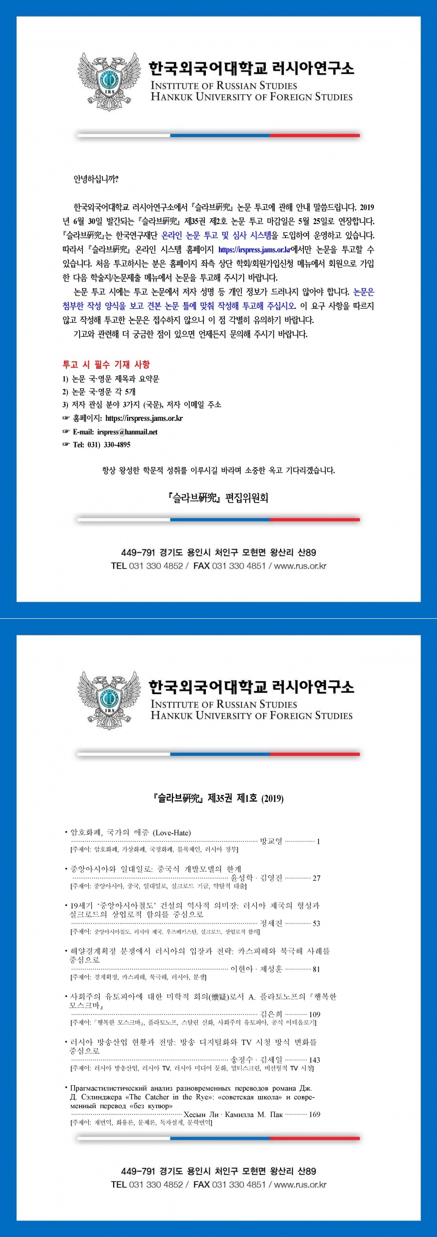 슬라브연구 35권 2호 (2019) 논문 투고 마감 연장