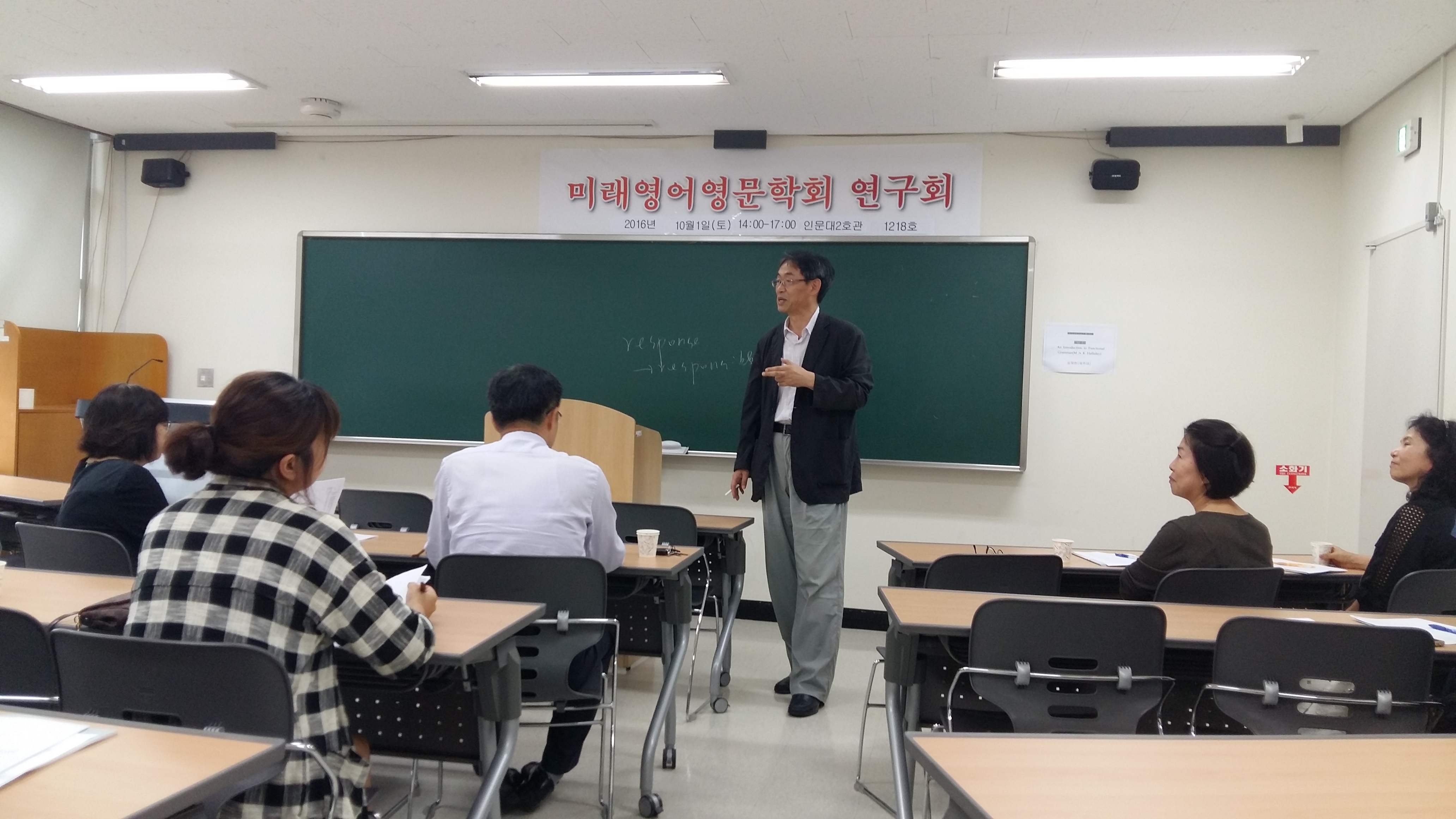 '영문법'을 주제로 학회 연구이사인 홍경선 교수님(제주대 초등영어교육과)과 부회장인 김재원 교수님(제주대 통역대학원)께서 각각 '영어습득/학습이론과 관련된 영문법의 유형'과 'Functional Grammar'에 대해 강의를 해주셨습니다.
