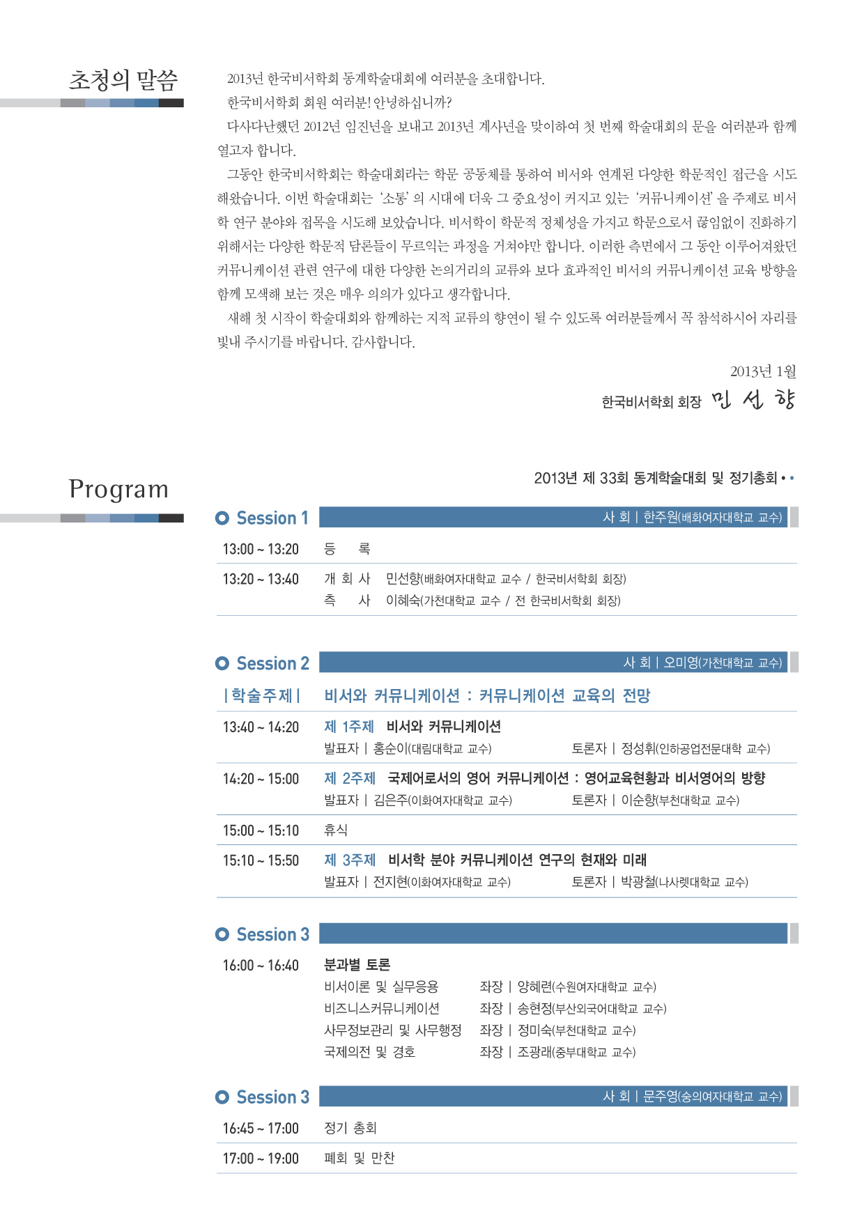 2013년도 제33회 동계학술대회 및 정기총회 개최 안내