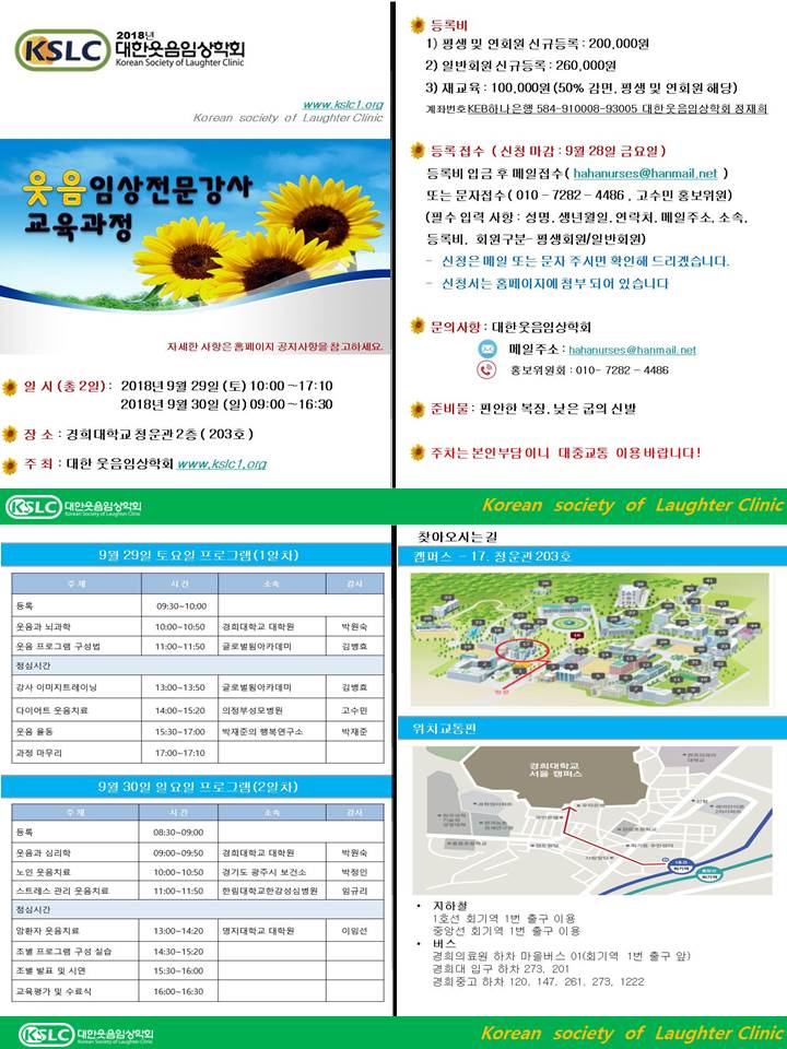 [홍보]대한웃음임상학회_“웃음임상전문강사” 교육 과정( 2018년 9월 29일~30일)