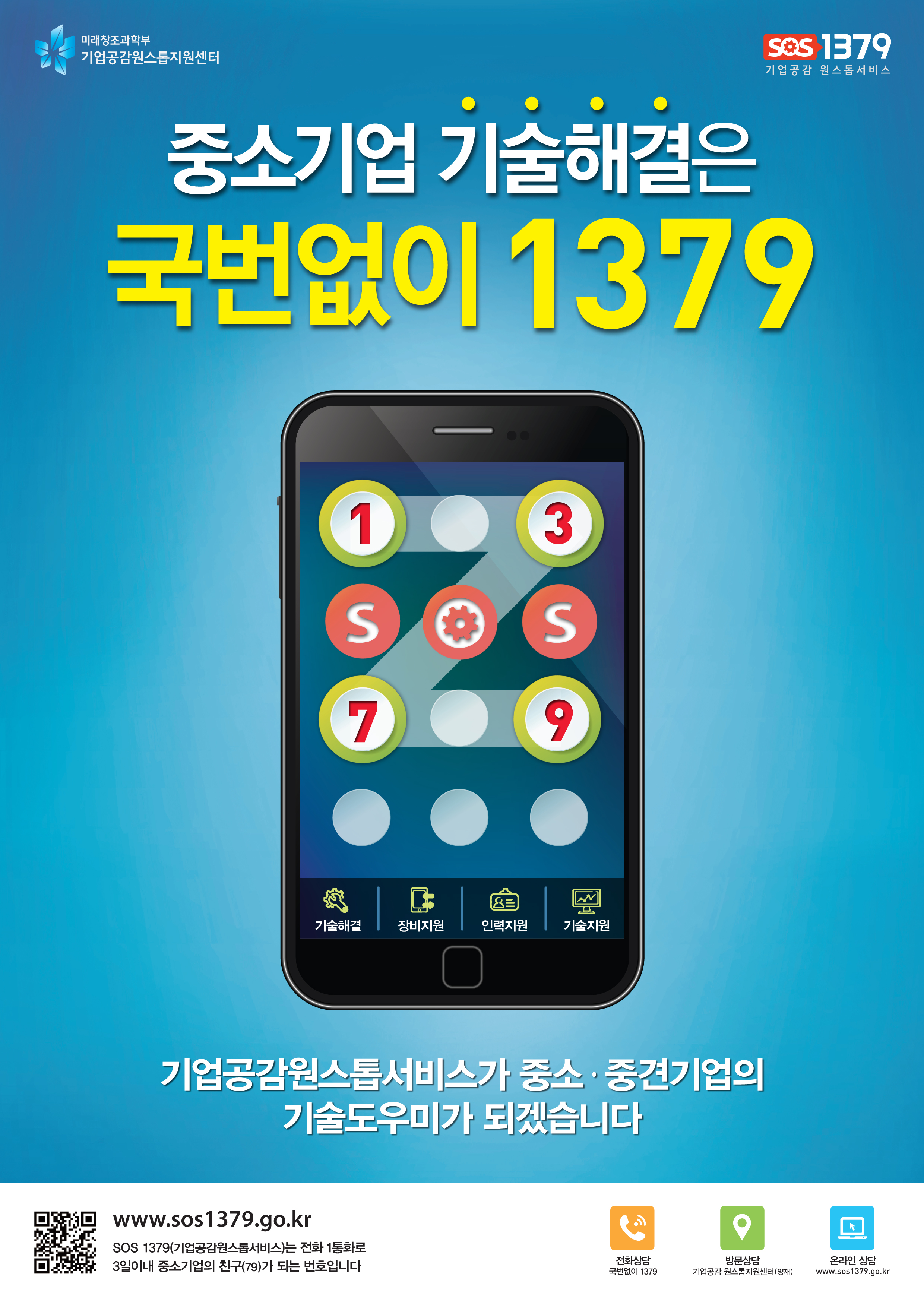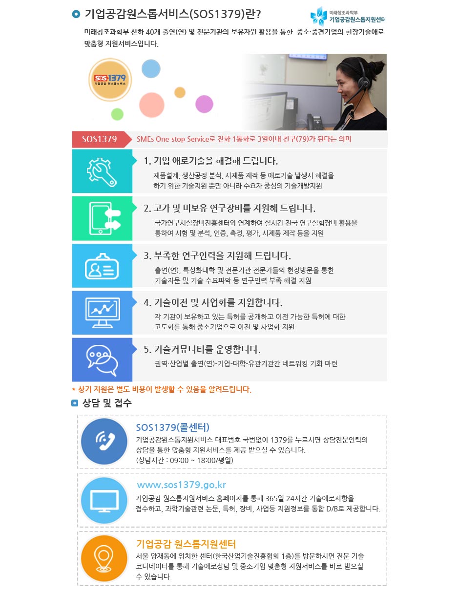 미래창조과학부 SOS1379 기업공감 원소톱서비스가 운영되고 있습니다. 기업체에서 참고하시기 바랍니다.