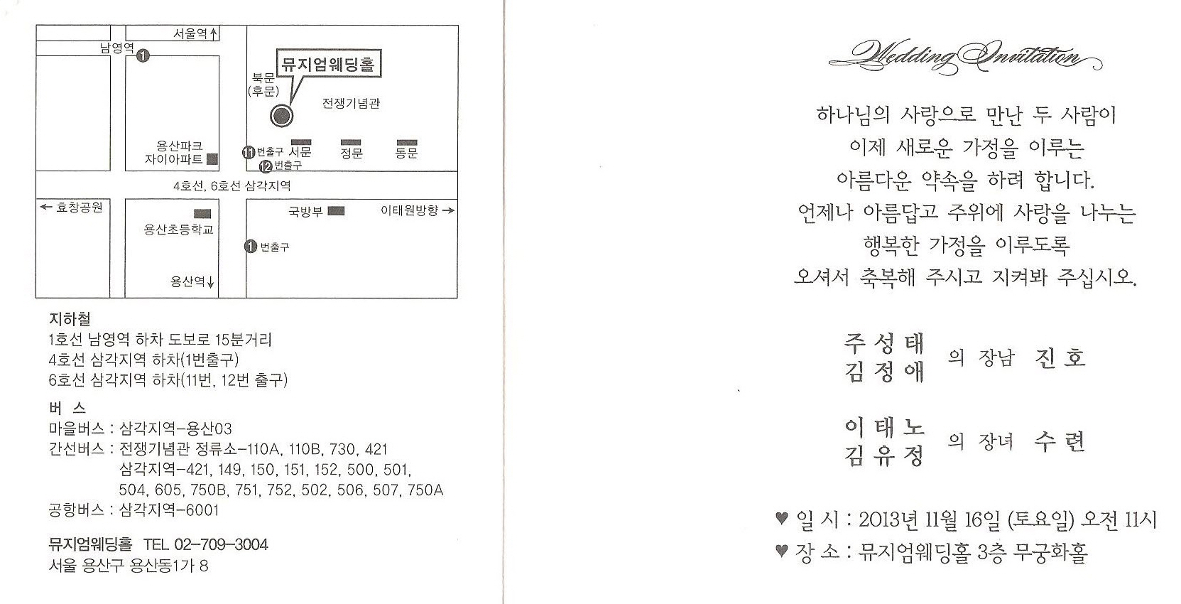 축하합니다 *^ㅡ^*우리학회 회원이신 (주)성보지오텍 이태노 대표이사의 자녀 혼사가 아래와 같이 있어 알려드리오니, 회원여러분들의 많은 축복 바랍니다.♡ 일 시 : 2013년 11월 16일(토요일) 오전11시♡ 장 소 : 뮤지움웨딩홀 3층 무궁화홀(용산 전쟁기념관)♡ 연락처 : 이 태 노 (010-8144-5790)
