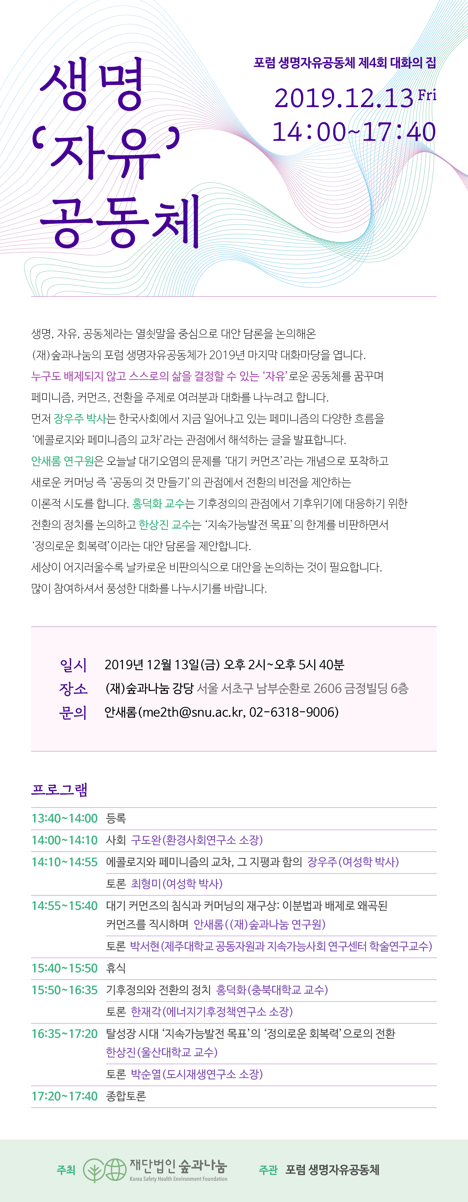 [숲과나눔] 포럼 생명자유공동체 제4회 대화의집 (19.12.13금 오후 2시)