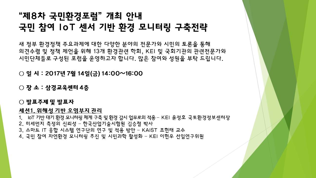 제8차「국민환경포럼」 국민 참여 IoT 센서 기반 환경 모니터링 구축전략