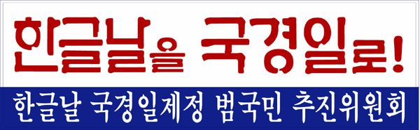 2005년 3월 13일 (일), '2005서울국제마라톤대회 겸 제76회동아마라톤대회에서 '한글날 국경일 제정' 홍보를 위해 만든 홍보 등판 딱지(스티커, 가로 27.5×8.5㎝). 이 딱지는 선수들의 등뿐만 아니라 가슴이나 자동차 유리에 붙여서 홍보하기에 알맞은 것임.
