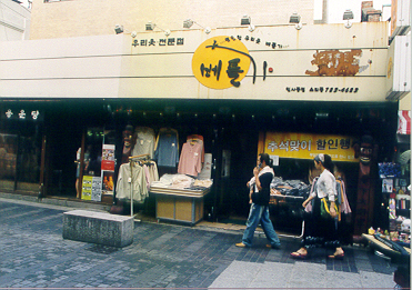 2004년 9월 15일, 강남 중학교 '사회 참여 체험 학습의 날'에 인사동에서 우리 옷 전문점 '베틀가'.