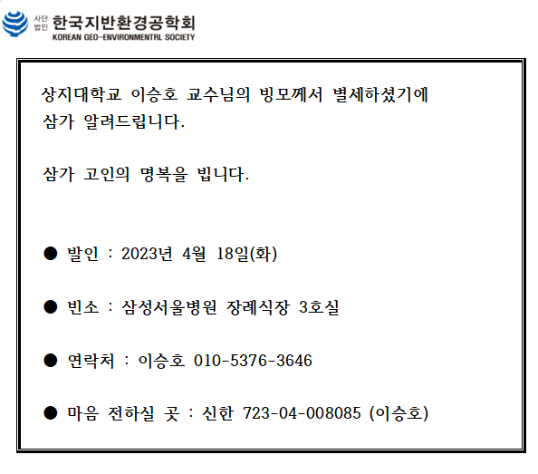[부고]상지대학교 이승호 교수 빙모상 안내
