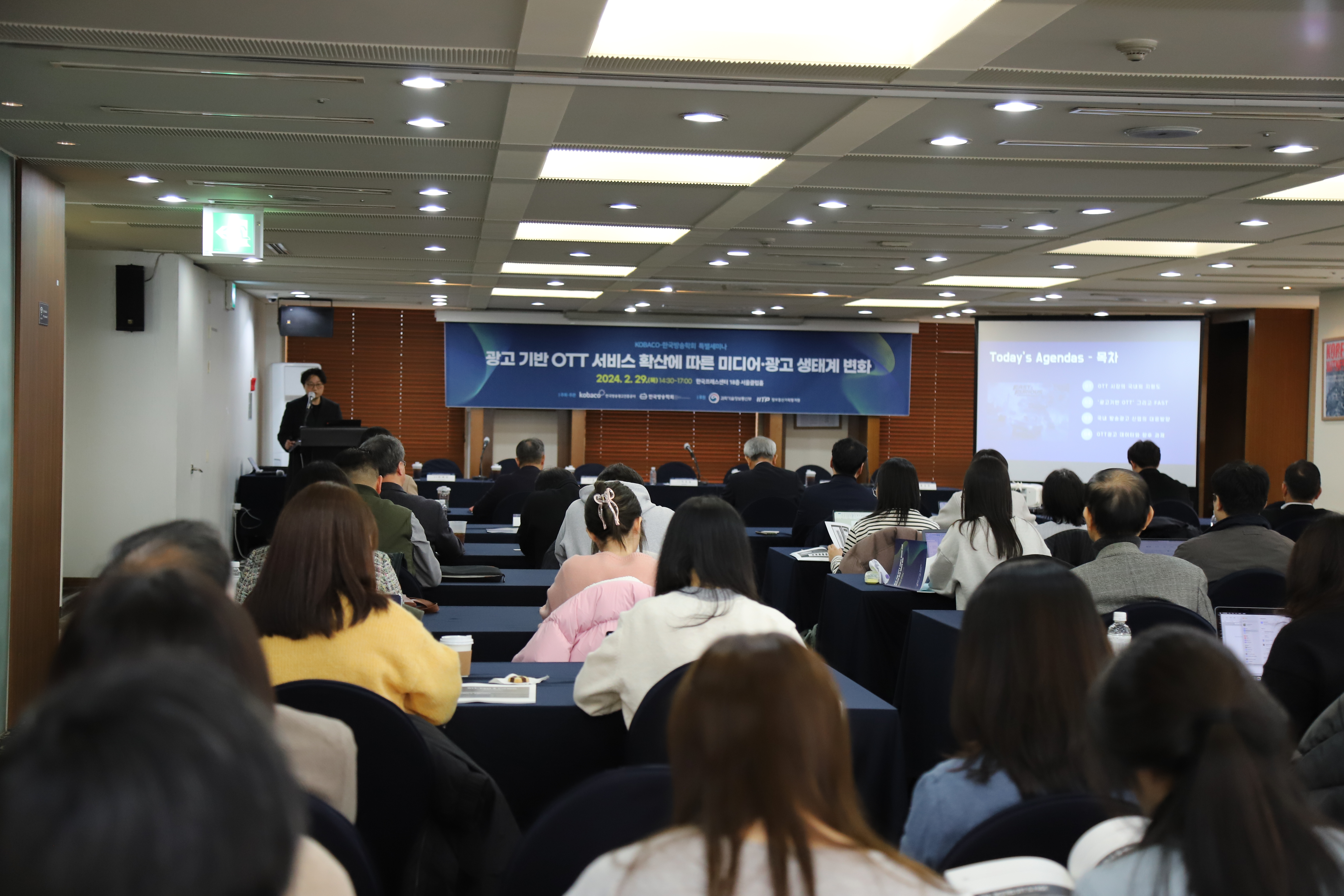 한국방송광고진흥공사(이하 코바코, 사장 이백만)와 한국방송학회(학회장 전범수, 한양대 교수)가 주최·주관하고, 과학기술정보통신부와 정보통신기획평가원이 후원하는‘광고 기반 OTT 서비스 확산에 따른 미디어ˑ광고 생태계 변화’ 세미나가 29일(목) 한국프레스센터 18층 서울클럽홀에서 열렸다.