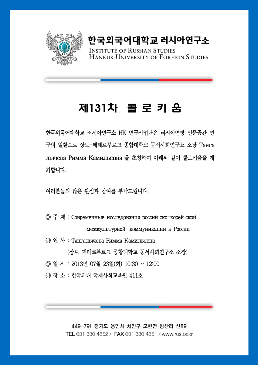 제131차 러시아에서의 러시아-한국 문화간 커뮤니케이션 연구