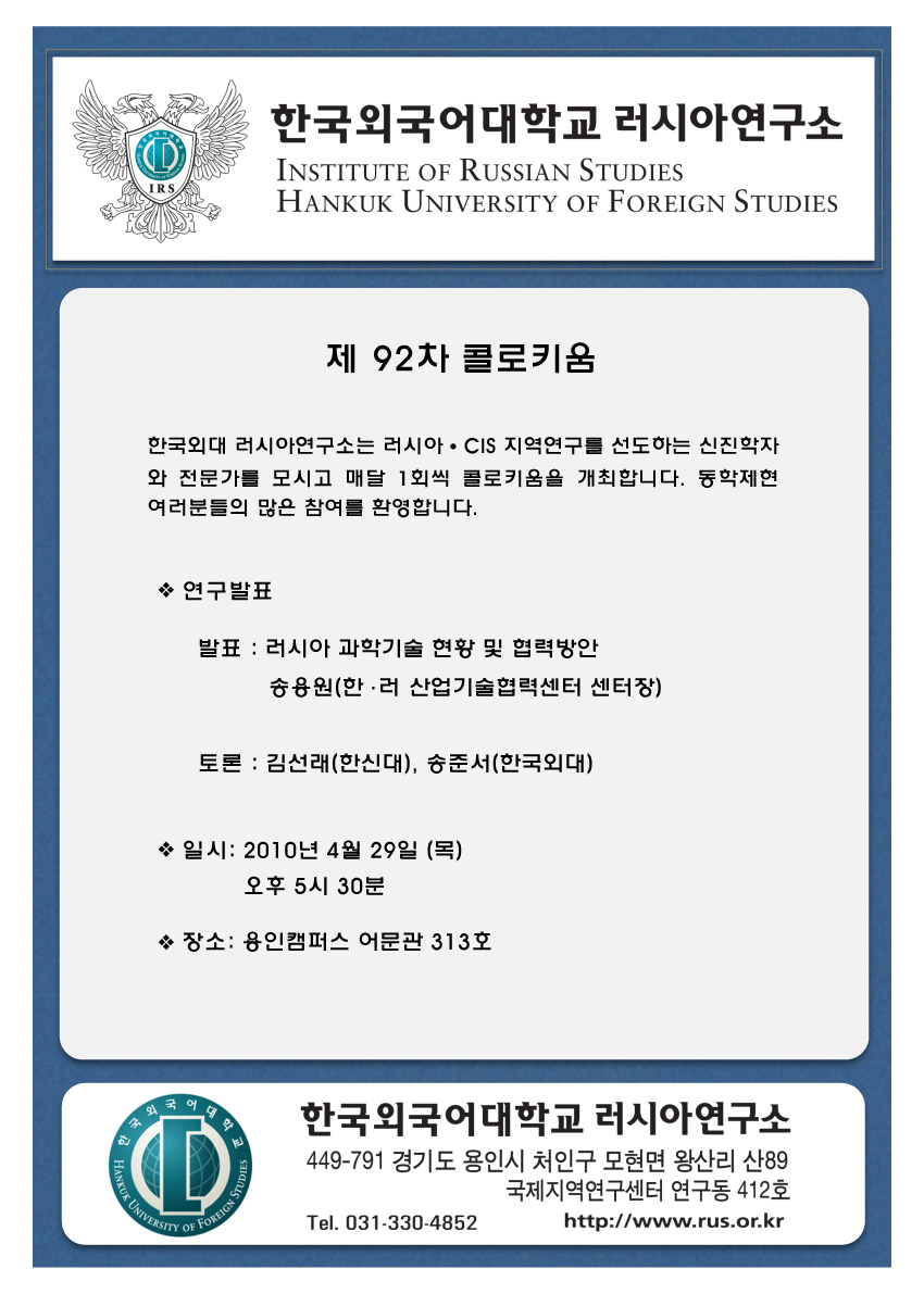 제92차 러시아 과학기술 현황 및 협력방안