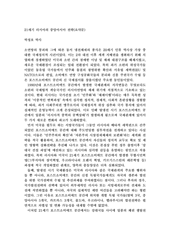 제75차 21세기 러시아의 중앙아시아 전략 외 1