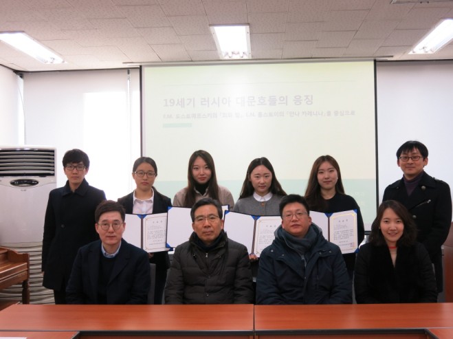 2017년 2월 11일(토) 우리 대학 서울캠퍼스 교수회관 세미나실에서 'Junior Scholars Club 3기 발표회 및 수료식'이 열렸다. 발표회에는 김현택 대외부총장, 제성훈 노어과 학과장, 김준석 러시아연구소 HK연구교수를 비롯해 일반대학원 노어노문학과의 전민규 멘토, 국제지역대학원 러시아·CIS 학과의 정유진, 박슬기 멘토 등이 참가하여 학부생들의 발표와 수료를 격려했다. 총 2개 주제, 4명의 발표자와 2명의 지정토론자로 구성된 발표회는 12시에 시작하여 14시까지 진행되었다. 발표회 이후에는 수료식과 3기 멤버들의 활동 보고가 16시까지 이어졌다.