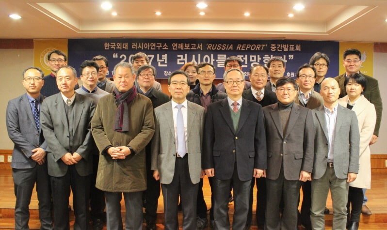 2017년 1월 12(우리연구소는 한국외대 서울캠퍼스 교수회관 2층 강연실에서 연례보고서 RUSSIA REPORT 발행의 일환으로 “2017 러시아를 전망한다” 제하의 국내학술대회를 개최했다우리연구소의 2017년 첫 학술행사로서 본 회의에는 러시아 전문가와 학문후속세대 등 총 80여 명이 참석하여 성황을 이뤘다.