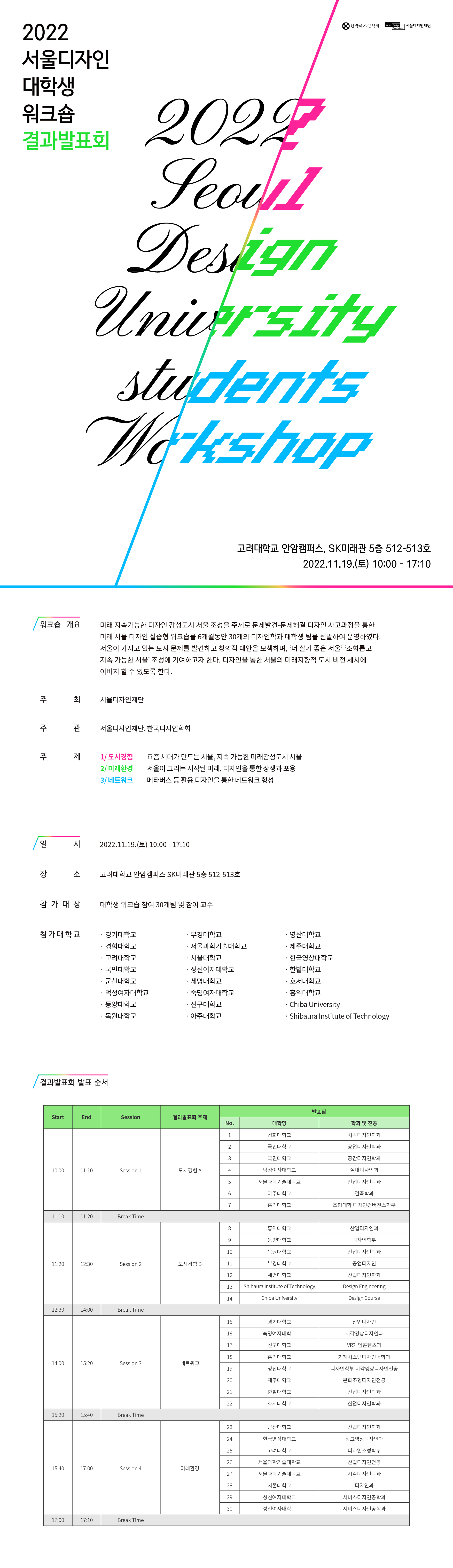 2022 서울디자인 대학생 워크숍 결과발표회 안내
