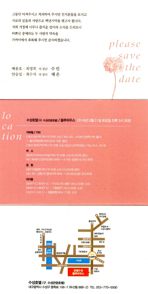 2. 장 소 : 대구 수성호텔(구.수성관광호텔) / 블루하우스 tel)053-770-5500