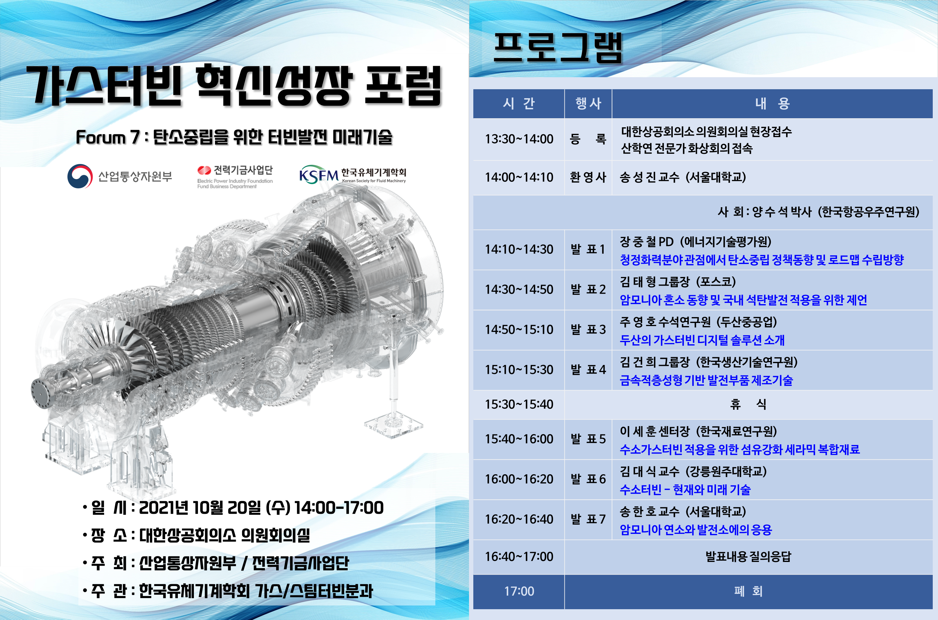 제 7회 한국유체기계학회 가스터빈산업 혁신성장 포럼 개최(10/19 수정)