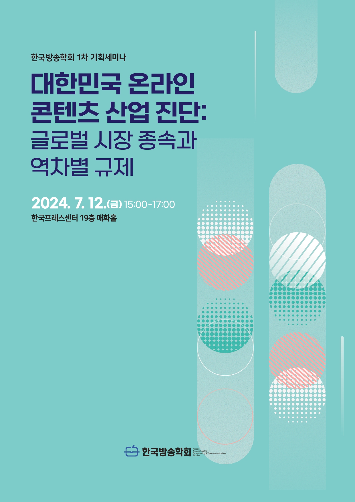 한국방송학회 ‘대한민국 온라인 콘텐츠 산업 진단: 글로벌 시장 종속과 역차별 규제’ 기획세미나 개최