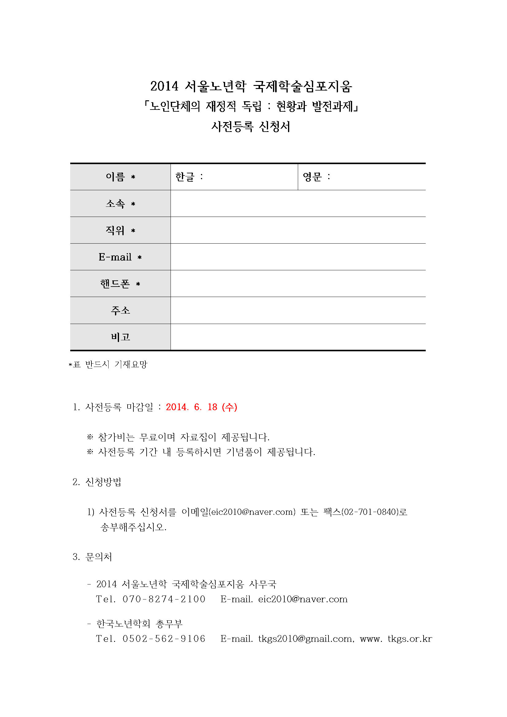 1. 사전등록 마감일 :2014. 6. 18 (수)