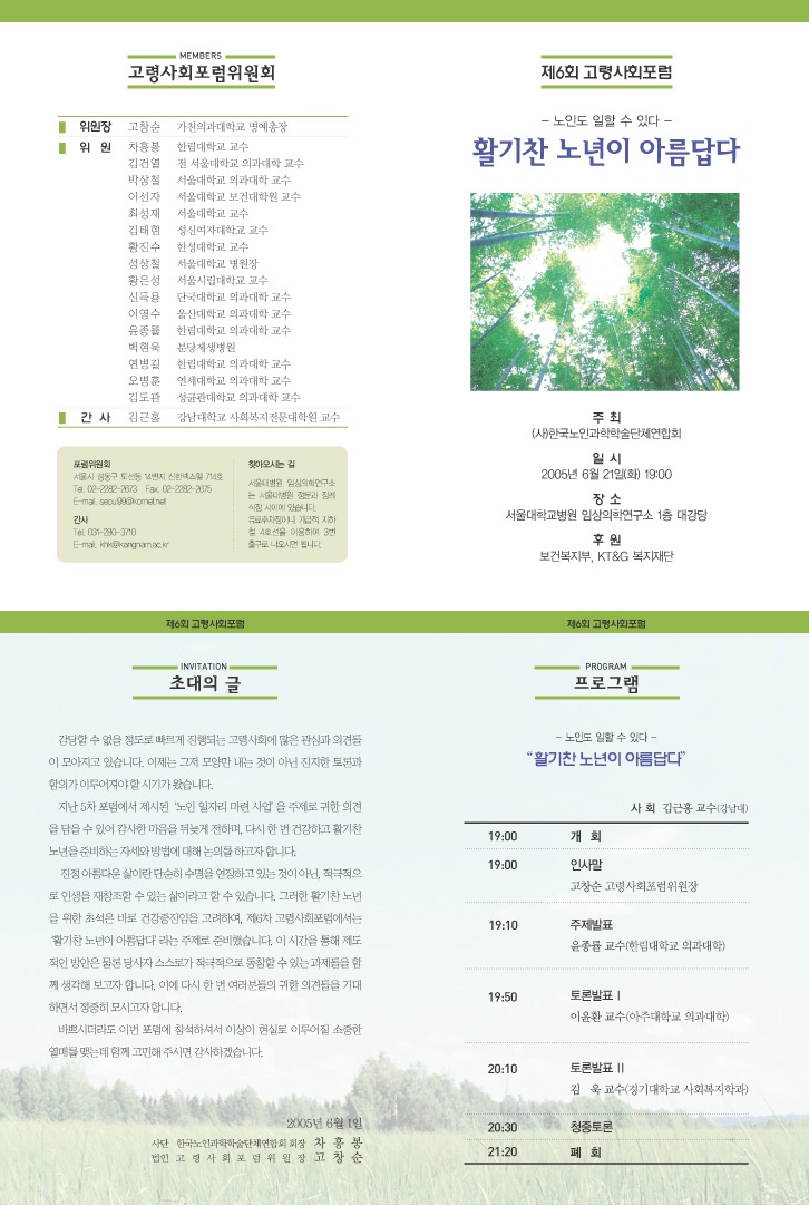 오는 2005년 6월 21일 (화)에 제6차 고령사회포럼을 개최합니다.