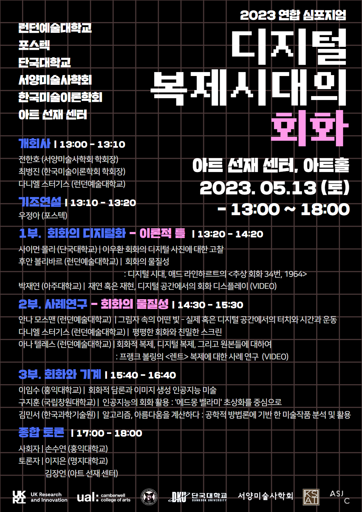 - 주최: 런던예술대학교, 포스텍, 단국대학교, 서양미술사학회, 한국미술이론학회, 아트선재센터