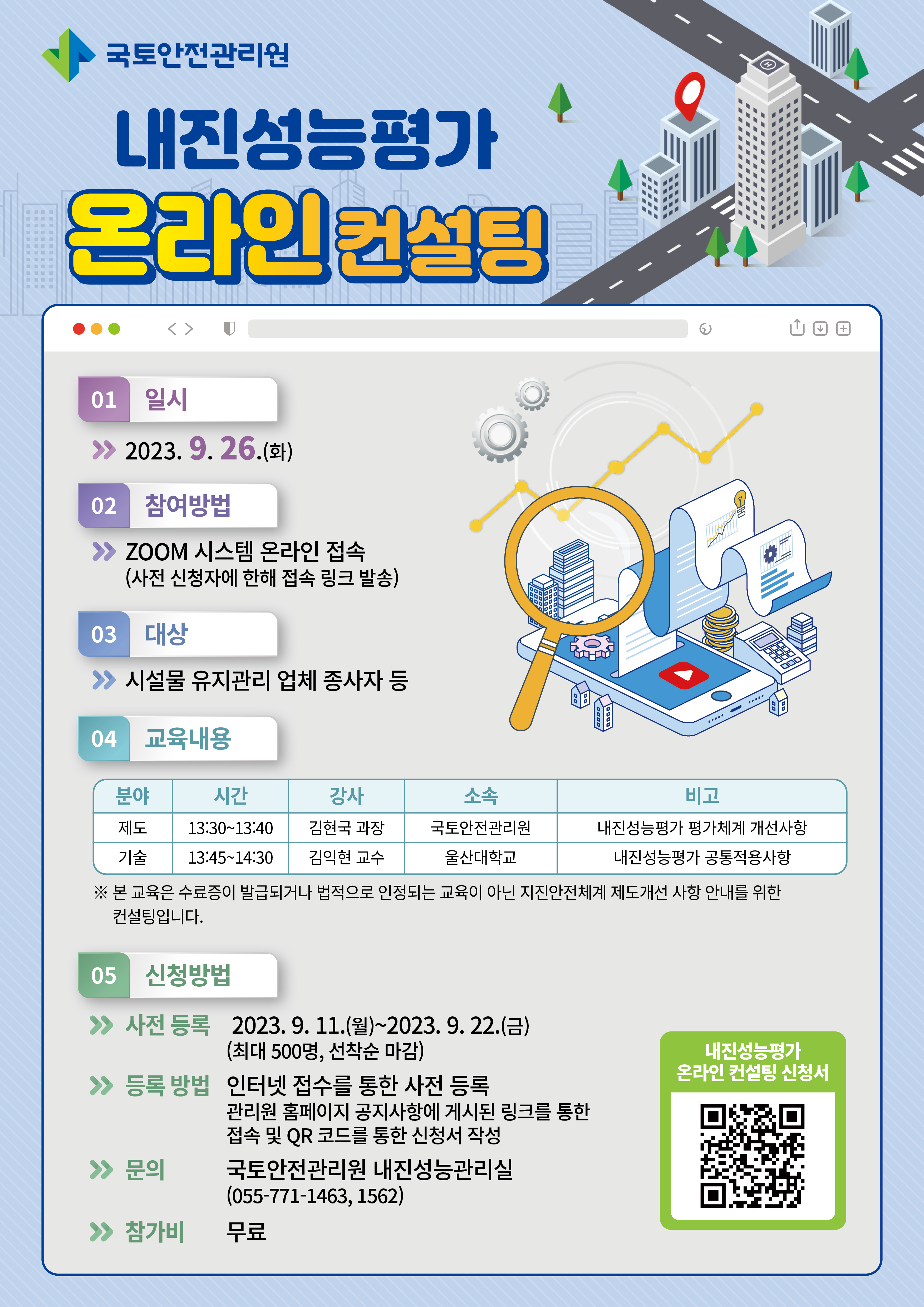 [국토안전관리원] '23년 내진성능평가 온라인 컨설팅