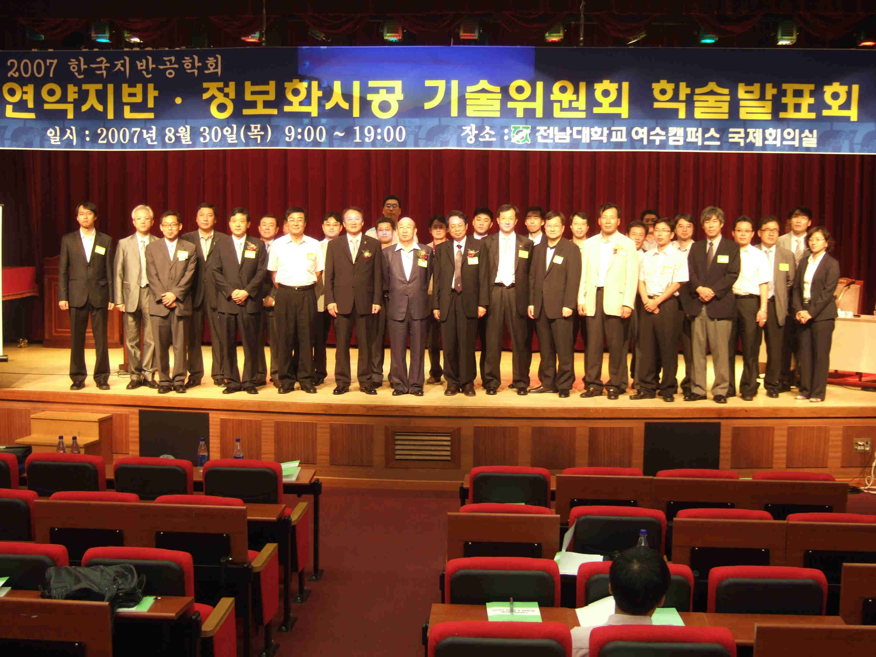지난 8월30일 여수 전남대에서의 연약지반 정보화시공 합동가을학술세미나 기념사진입니다.