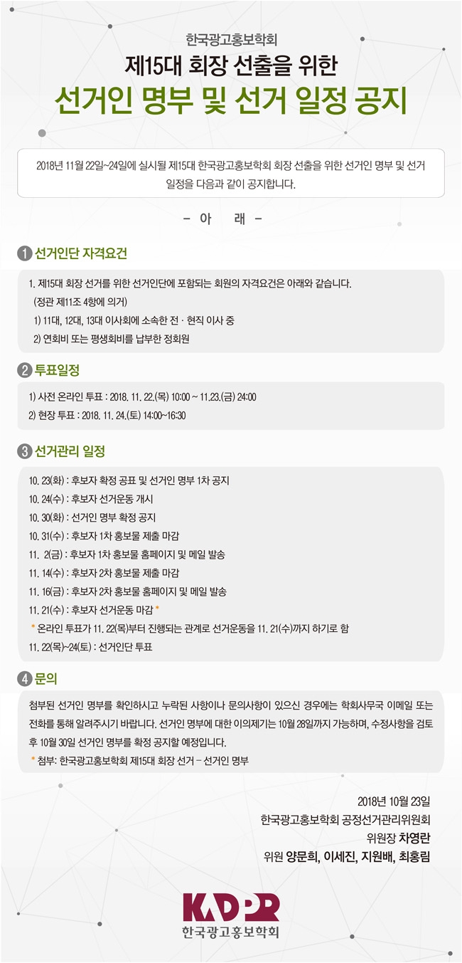 [KADPR] 제15대 회장 선출을 위한 선거인 명부 및 선거 일정 공지