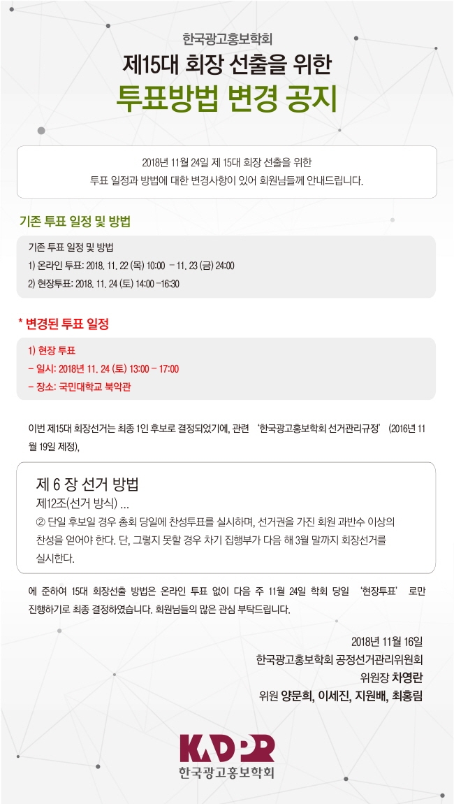 [KADPR] 제15대 회장 선출을 위한 투표방법 변경 공지