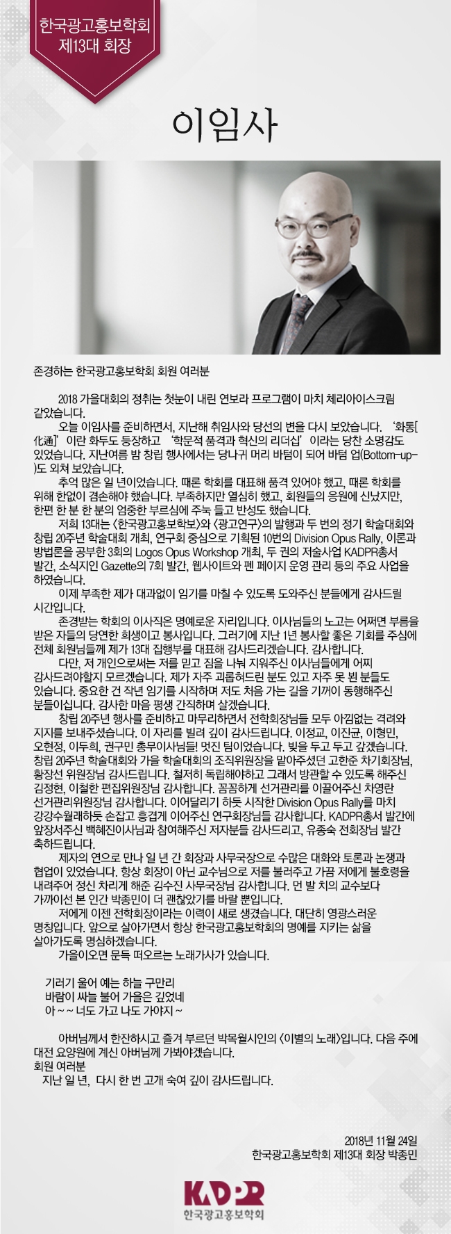 [KADPR] 박종민 제13대 학회장 이임사