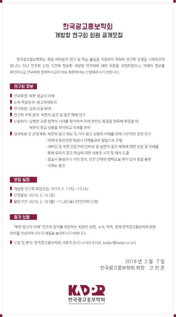 [KADPR] 개방형 연구회 회원 공개모집