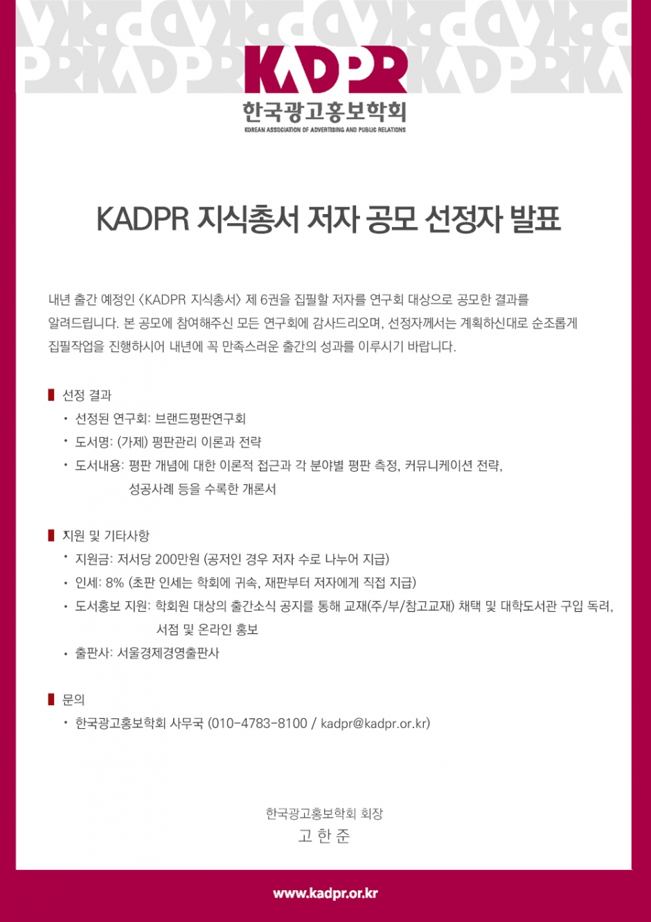 [KADPR] 지식총서 저자 공모 선정자 발표