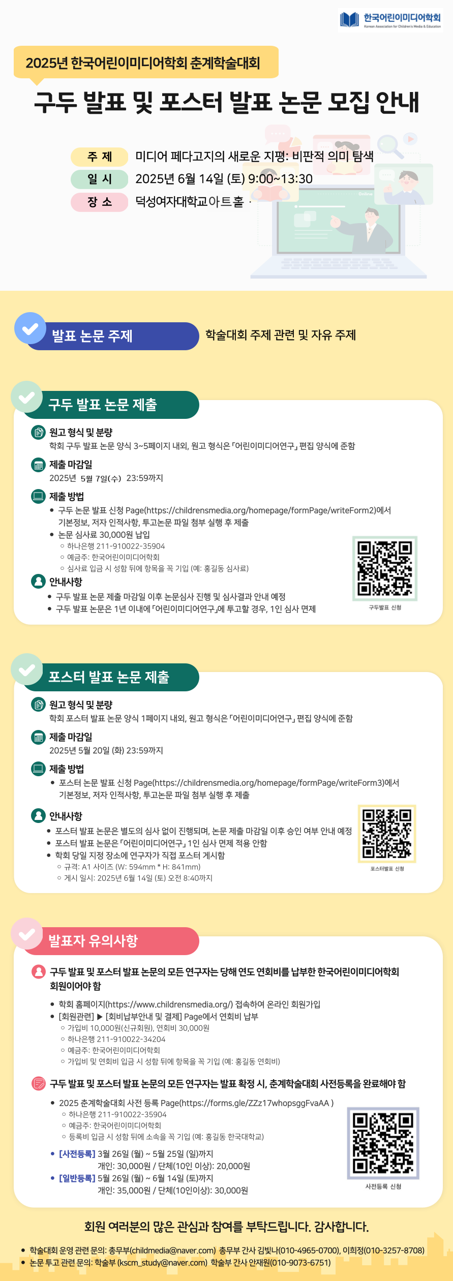 2025년 한국어린이미디어학회 춘계학술대회 사전등록 및 구두/포스터 발표 논문 모집 안내