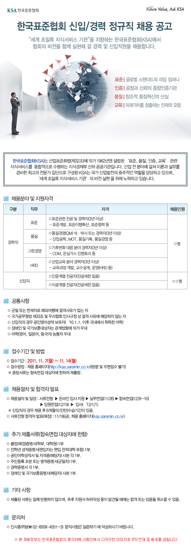 한국표준협회 채용공고안내 자세한 내용은 첨부파일을 확인해주세요