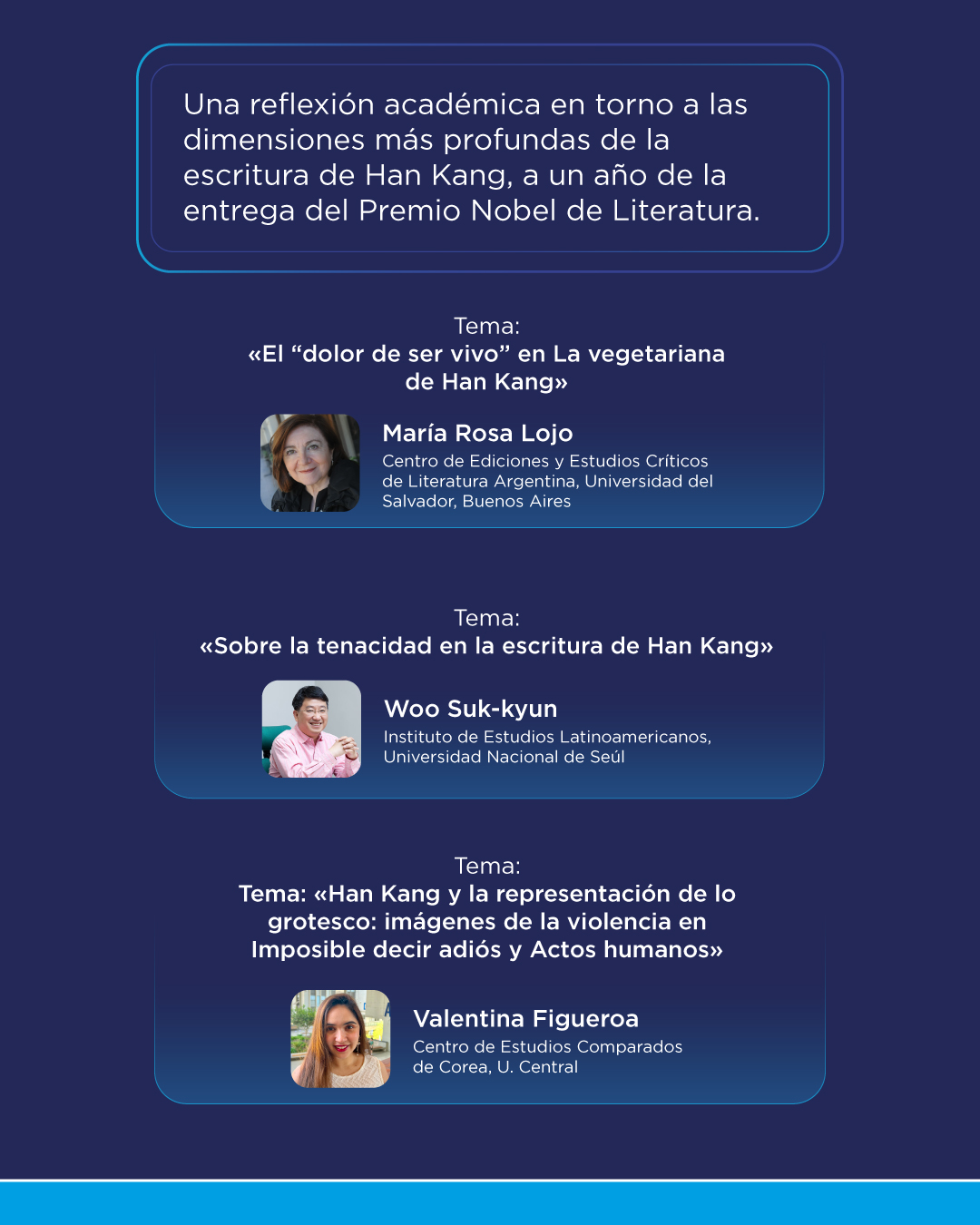 ○ 제목: A un año del Nobel: lecturas acerca del dolor, la violencia y la muerte en la obra de Han Kang (노벨문학상 1년: 한강 작품 세계 속의 고통, 폭력, 죽음)