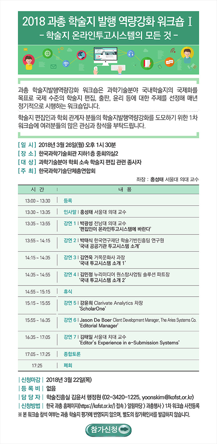 2018년 과총 학술지발행역량강화 1차 워크숍 신청 안내