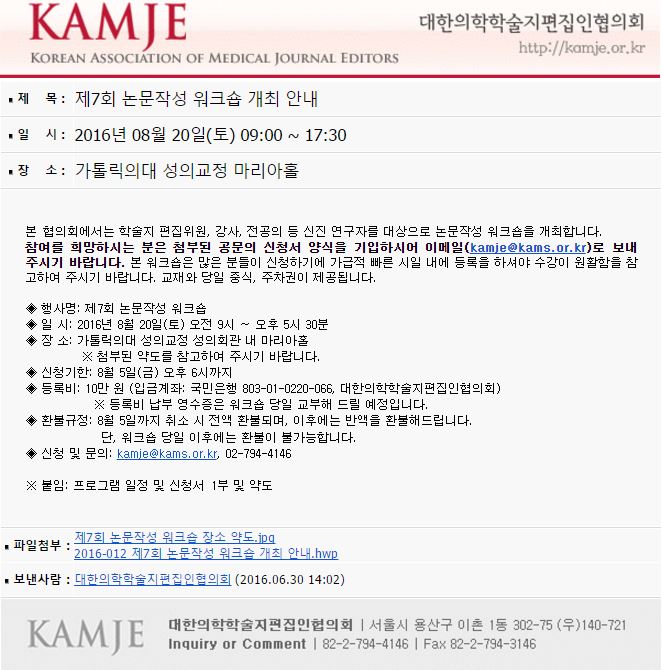 제7회 논문작성 워크숍 개최 안내