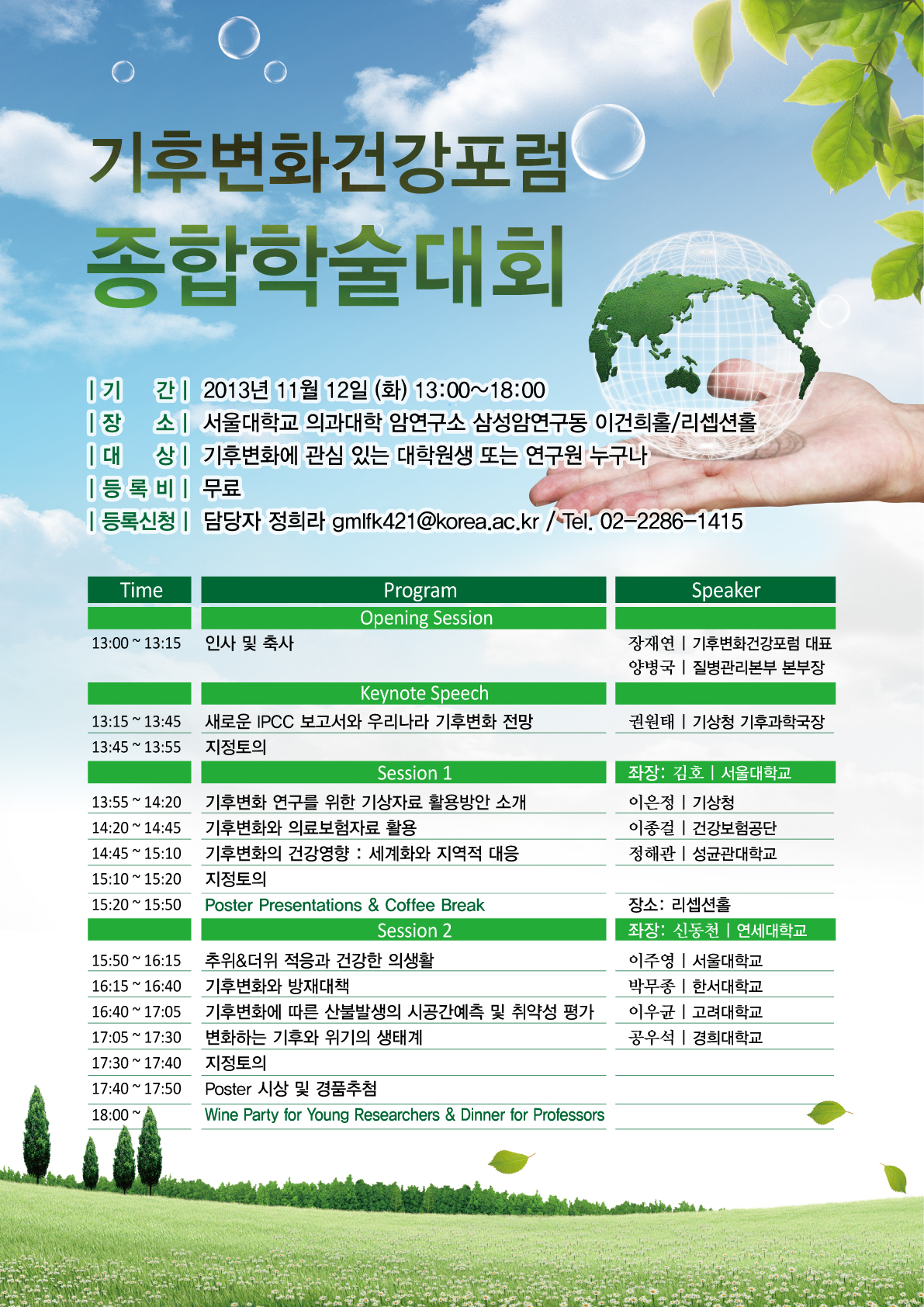 등록신청: 담당자 장희라  gmlfk421@korea.ac.kr  / Tel. 02-2286-1415
