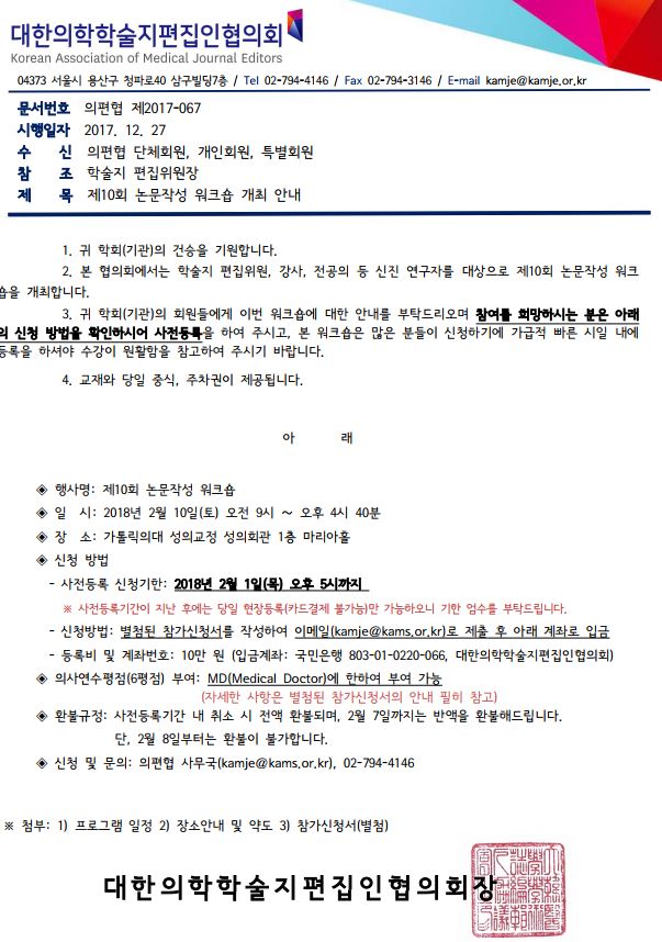 제10회 논문작성워크숍 개최 및 참가신청 안내
