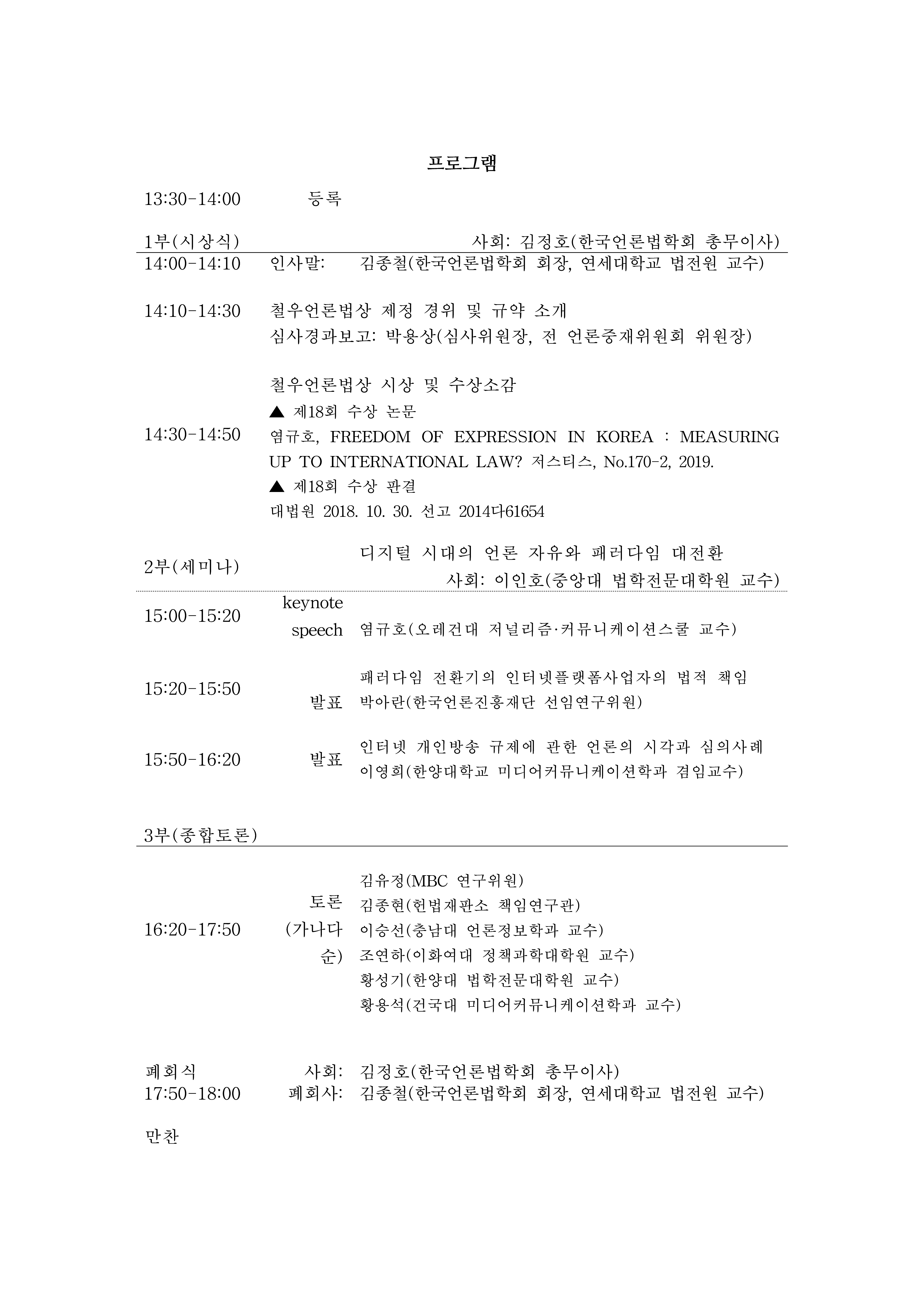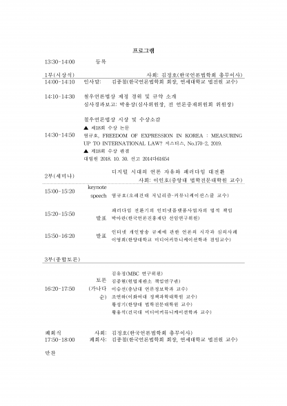 존경하는 한국언론법학회 회원 여러분께,