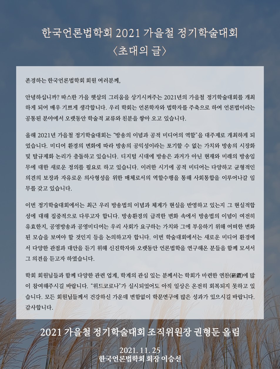 [공지] 한국언론법학회 2021 가을철 정기학술대회 초대의 글