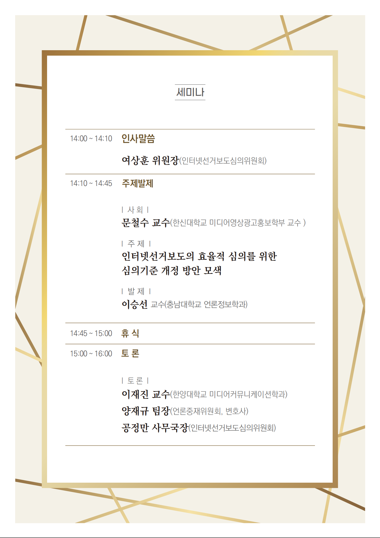 [공지] 인터넷선거보도 심의제도 개선 방안 세미나 개최
